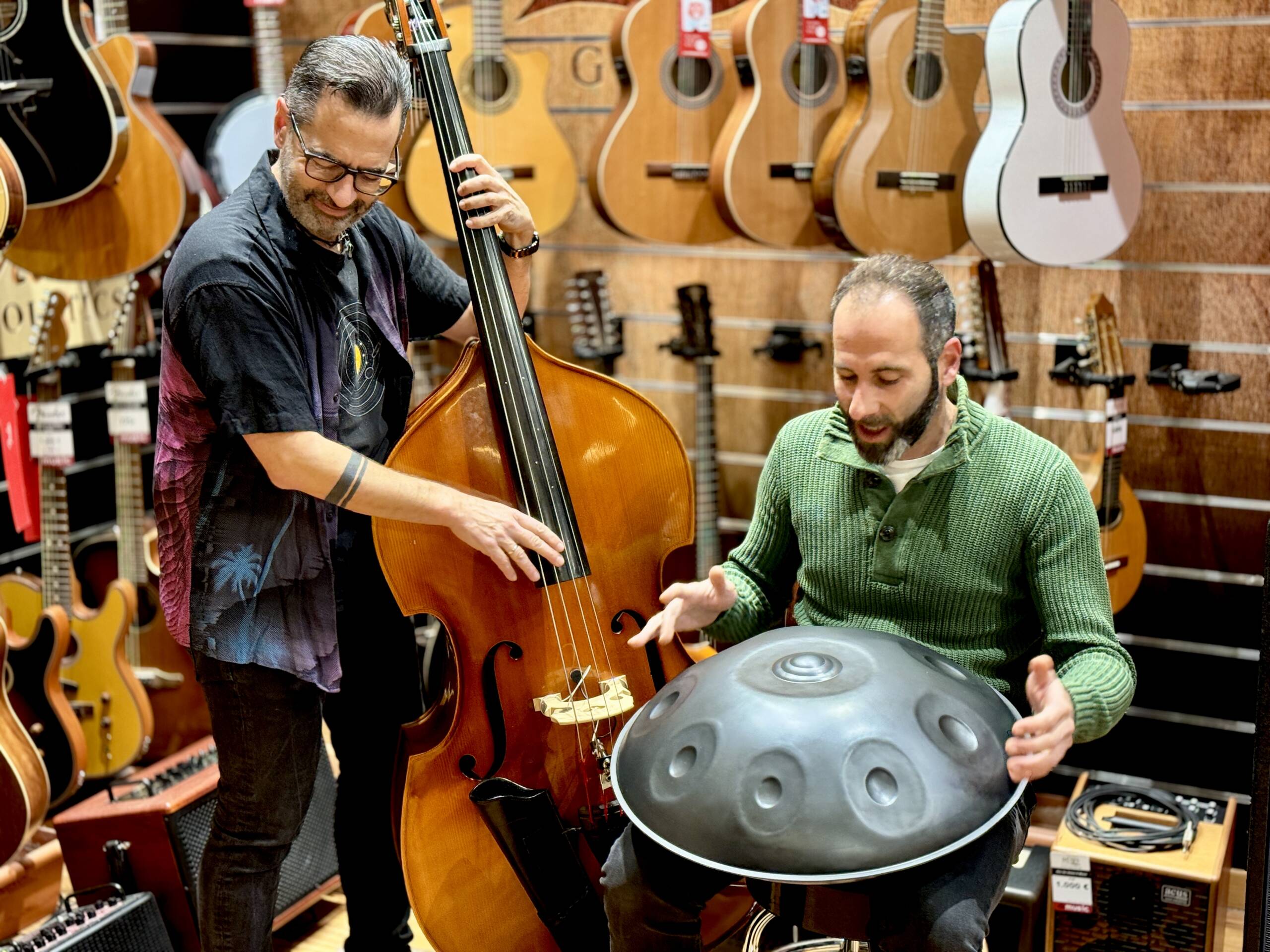 armonía y los diferentes timbres que consigue con el contrabajo, el bajo eléctrico fretless (sin trastes) y el Chapman Stick, un instrumento creado para la técnica de apping polifónico.