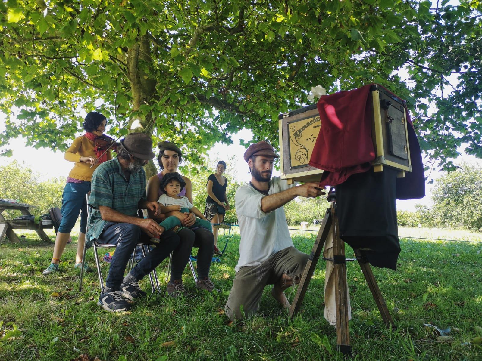 Mi nombre es Miguel. Soy antropólogo y fotógrafo minutero, y desde hace 5 años recorro distintos lugares del territorio peninsular con una cámara de madera, construida con mis propias manos. Para que se entienda, el fotógrafo minutero era aquel que tomaba retratos en las calles y los pueblos en los años, sobre todo, de posguerra, revelando las fotos en el acto a través de los líquidos químicos que van dentro de la cámara, y entregando la copia, en blanco y negro, en cuestión de minutos.